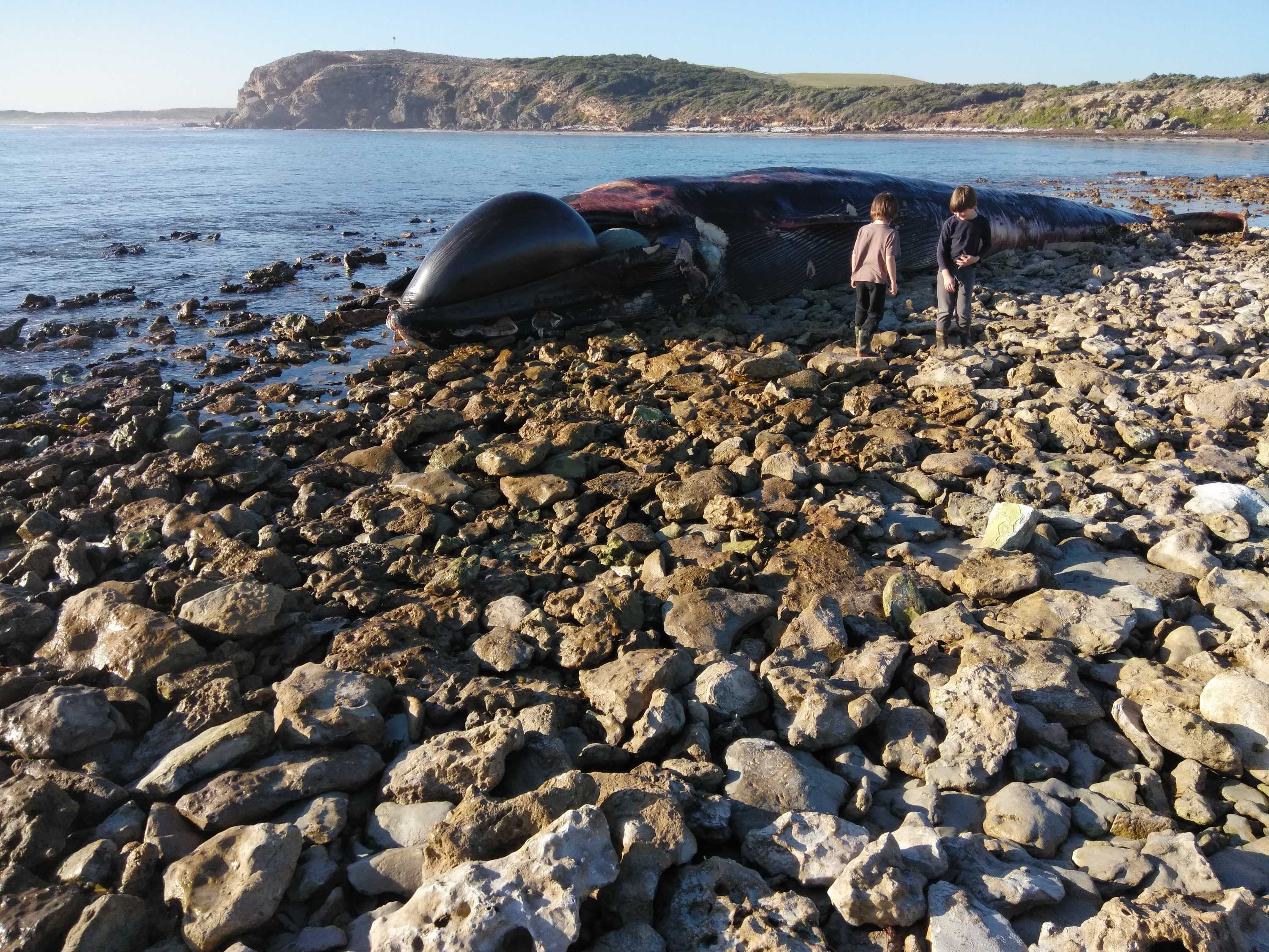 It has been established that the whale has been bitten several times by great white sharks, and the bay is covered in a lot of blood and pieces of blubber are afloat at sea, a spokesman.